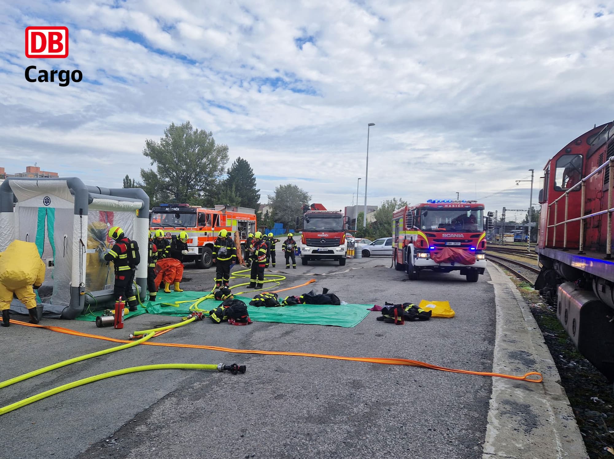 Today we met with colleagues from DB Cargo Spedkol, DB Cargo Polska and other guests at Bohumín site. The aim of the meeting was to raise awareness of safety and improve safety improvements in international transport. At the same time, we wanted to test our knowledge in the field of occupational health and safety (OHS) by presenting potential risks that may arise when transporting dangerous goods according to RID regulations. In cooperation with the Fire Rescue Service of the Railway Administration and the Fire Rescue Service of Bohumín, we jointly planned and prepared a demonstration of simulated intervention.